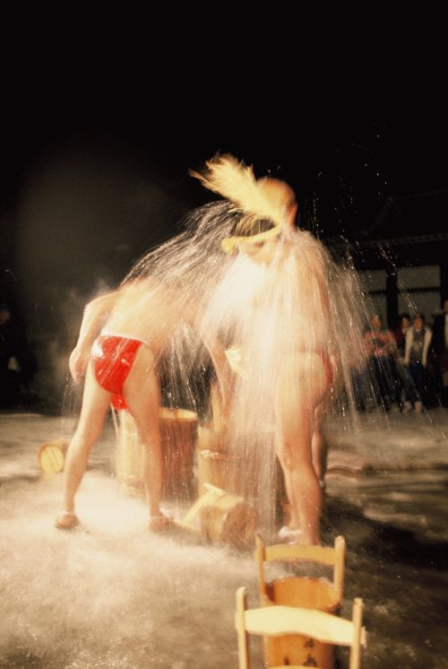 毎年大寒にあたる1月20日に行なわれる勇壮な寒行です。古くは御嶽行者の修行として行なわれていたが現在は一般の青壮年達が草越区内の辻で寒水を浴び、無病息災や家内安全を願って熊野神社に詣でる祭りとなっています。